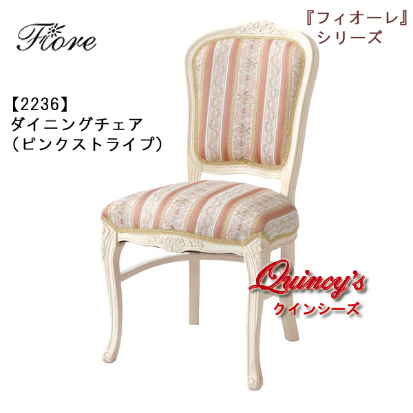 最安値!【2236】フィオーレ ダイニングチェアー(ピンクストライプ)ホワイト