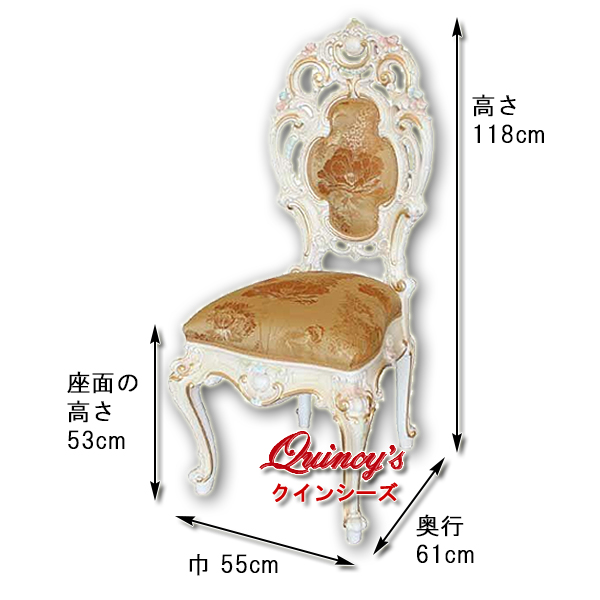 サイズ 巾 55cm、奥行 61cm、高さ 118cm(座面の高さ53cm)