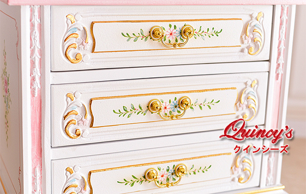 送料無料!【5668】ロココ調ナイトテーブル(3段チェスト) ※カラー2色ピンク、ブルーあり ※天板ガラストップサービス