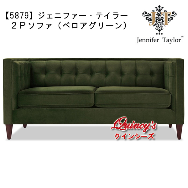 送料無料!【5879】ジェニファー・テイラー(ベロアグリーン)2P ソファ