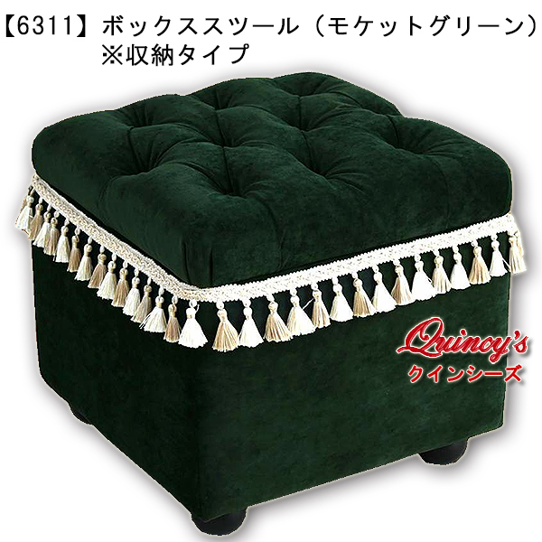 送料無料!【6311】ボックスツール(モケットグリーン)※収納タイプ