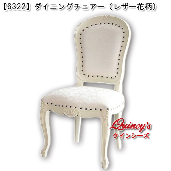 白フレームにレザーの花柄を貼り華やかなスタイルのダイニングチェアーです。