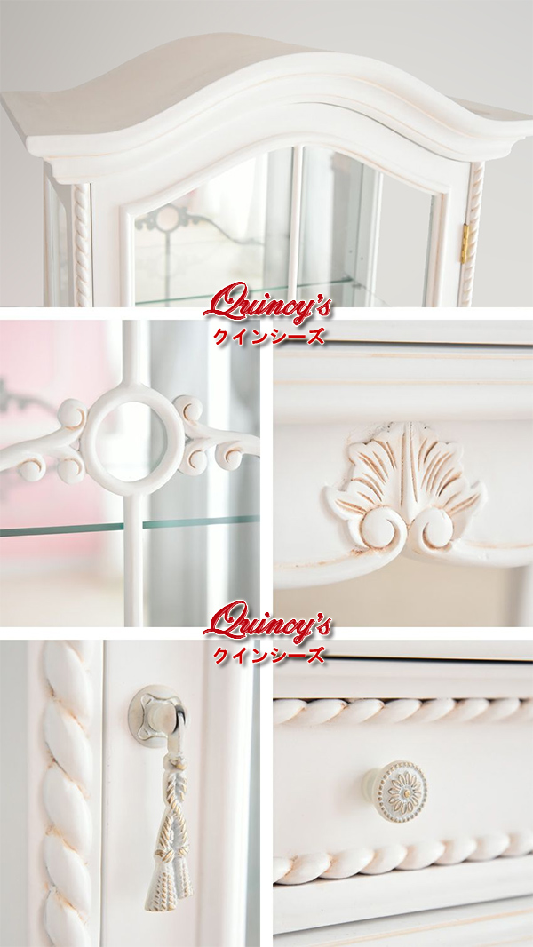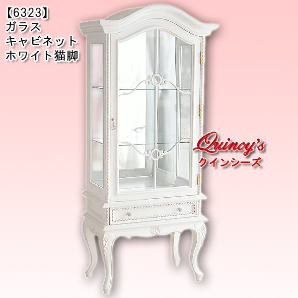 送料無料【6323】ガラスキャビネット(ホワイト)猫脚