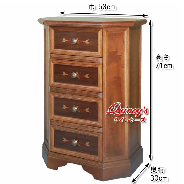 北イタリア伝統の象嵌細工入りの4段チェストです。