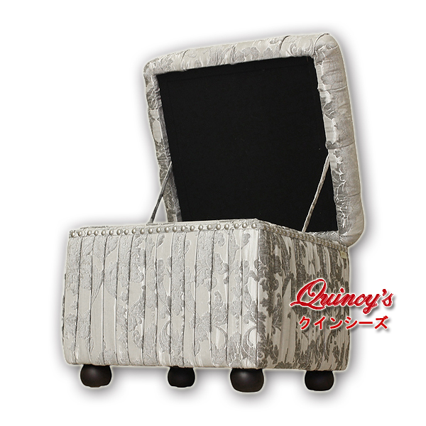 ラ・ローザシリーズのグレーの収納機能機能付きのスツールです。