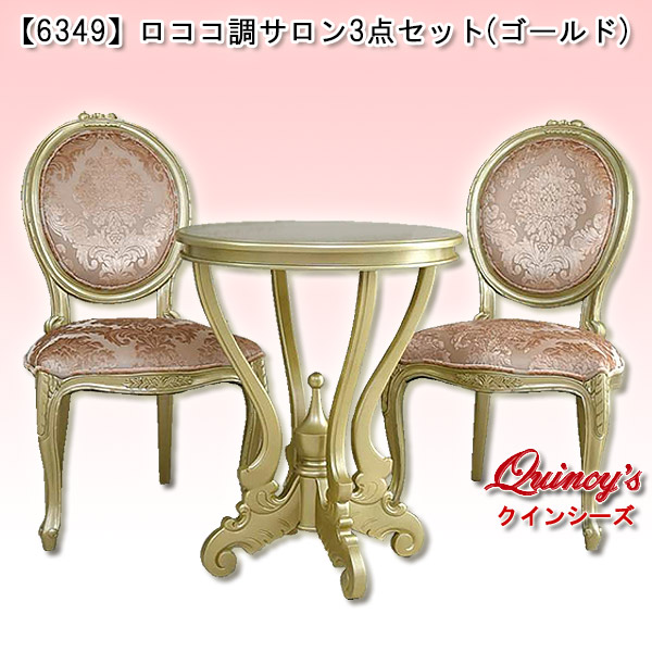 送料無料【6349】ロココ調サロン3点セット(ゴールド)