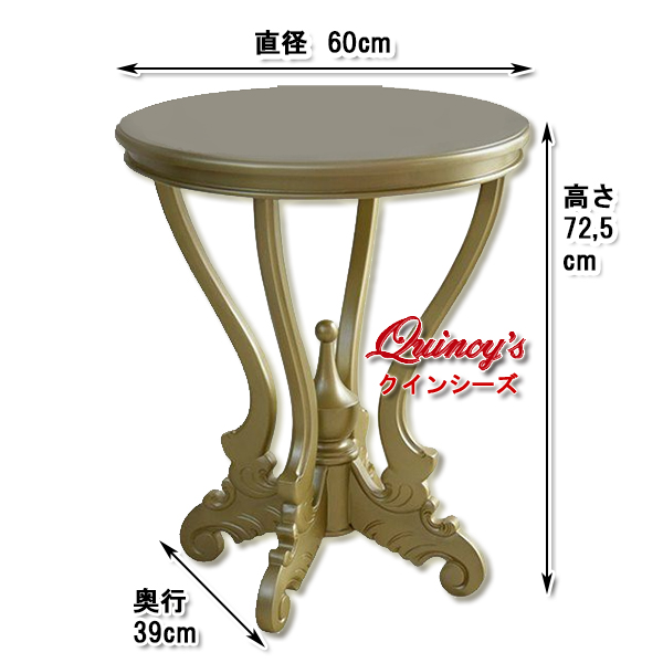 テーブル 直径 60cm、脚の奥行 39cm、高さ 72,5cm