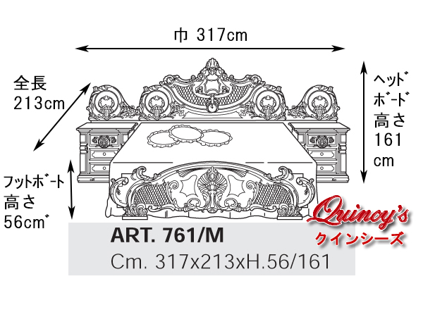【6532】 イタリア製 シリック社 ロココ調クイーンベッドフレーム (※マットレス別売 173×200cmを使用)#761(ご予約対応品)