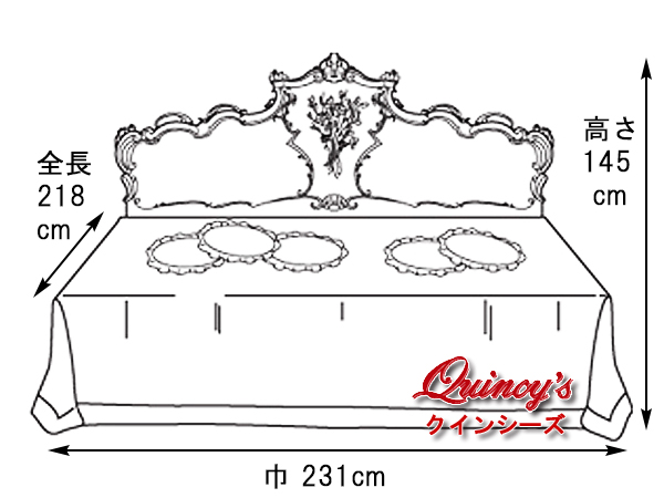 巾 231cm、全長 218cm、ヘッドボードの高さ 145cm